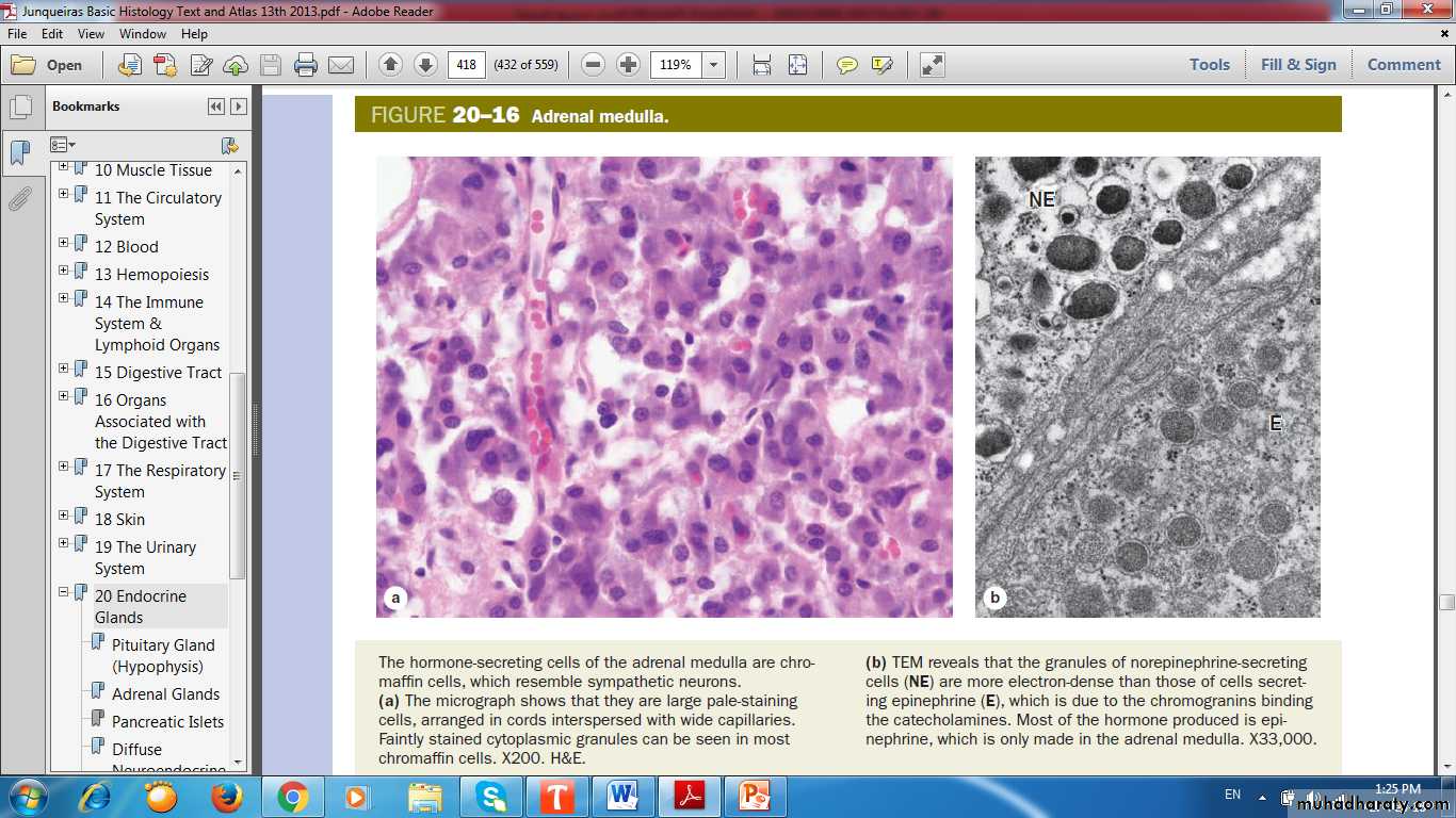 Chromaffin Cells are large, pale-staining polyhedral cells arranged in cords or clumps