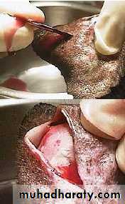 • During aural haematoma apply “thorough to through ”i.e. horizontal mattress suture along the whole thickness, both sides of incision site.
