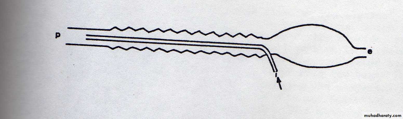 With this system rebreathing is prevented by maintaining the total gas flow rate from the cylinders slightly in excess of the patient’s respiratory minute volume. The animal inhales from the bag and wide-bore tubing. The exhaled mixture passes back up the tubing displacing the gas in it back into the bag until it is full.To ensure minimal rebreathing of the expired gases the fresh gas flow rate should be equal to, or greater than, the minute volume of respiration of the patient