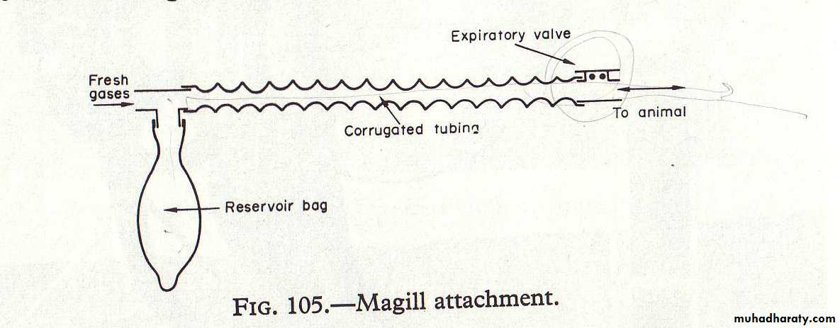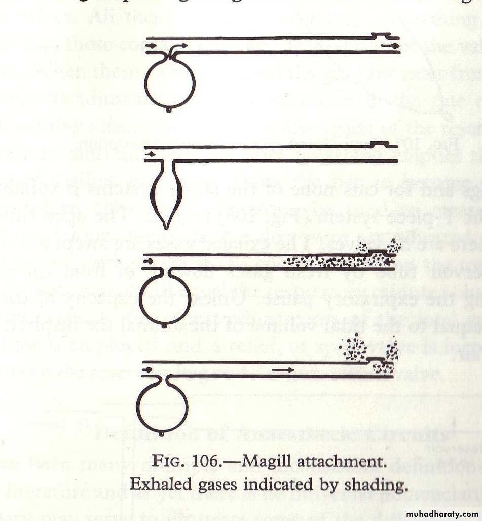 Carbon dioxide removal depends on the fresh gas flow rate, and on the minute and tidal volumes of respiration of the patient.The Ma gill circuit: