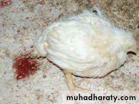 The area around vent is stain with blood oocyst are distributed by fecesCoccidiosis