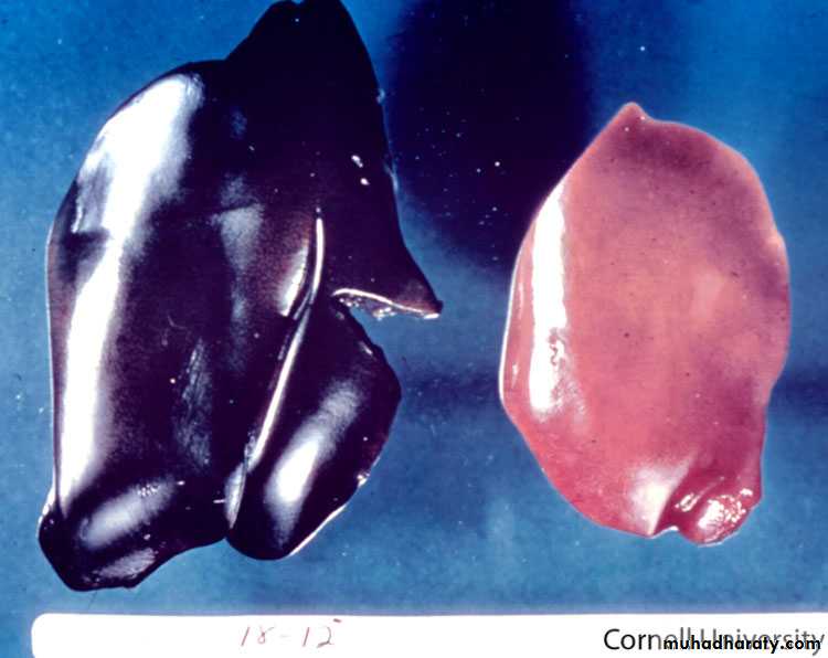Lesion – severe hepatomegaly and congestion the liver may be enlarged and discolored