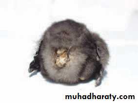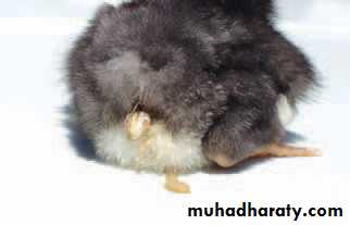 Pic.1species: chick(vent).Clinical signs: sleepy, depressed and their growth is retarded. The feather around vent is stained with diarrhea feces or pasted with dry feces.