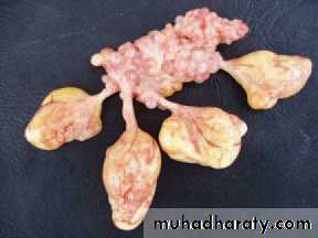 Pic. 8organ: ovarian folliclelesion:affected follicle are deformed and appear like thick pendula ting masses (egg should not be used for breeding).