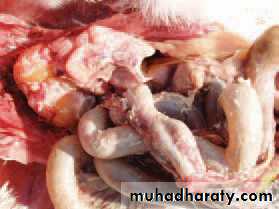 organ- - cecumLesion – vermiform of the cecum result from an acute typhlitis in 7 day old broiler