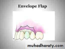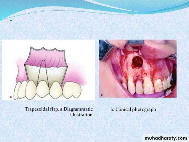 1.Trapezoidal Flap(THREE SIDED FLAP):It is formed by a horizontal incision along the gingivae, and two oblique vertical releasing incisions extending to the buccal vestibule