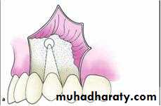 2. Triangular Flap (2 sided flap) :This flap is the result of an L-shaped incision with a horizontal incision made along the gingival sulcus and a vertical or oblique incision. The vertical incision begins approximately at the vestibular fold and extends to the interdental papilla of the gingiva. The triangular flap is performed labially or buccally on both jaws and is indicated in the surgical removal of root tips, small cysts, and apicoectomies.