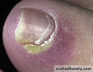The protease inhibitors lamivudine and indinavir can cause paronychia and ingrown toenails in about 4% of patients.Fungal nail infections {Discussed previously}