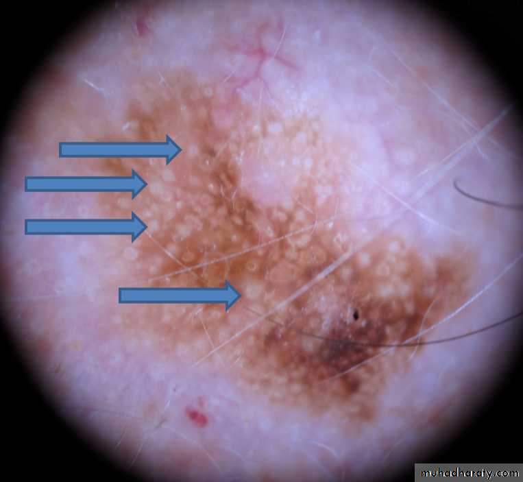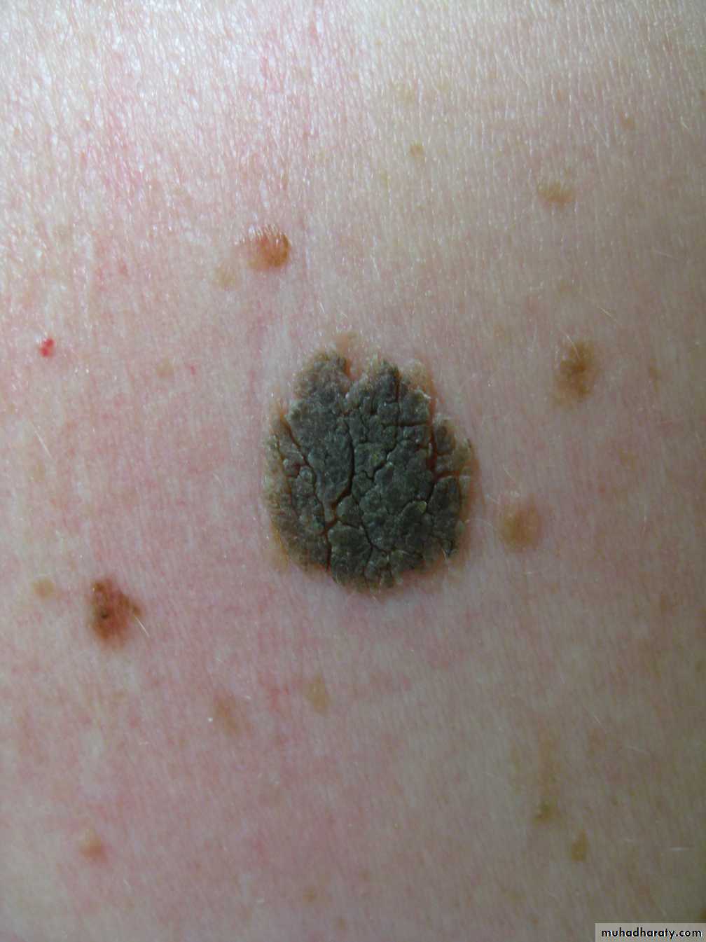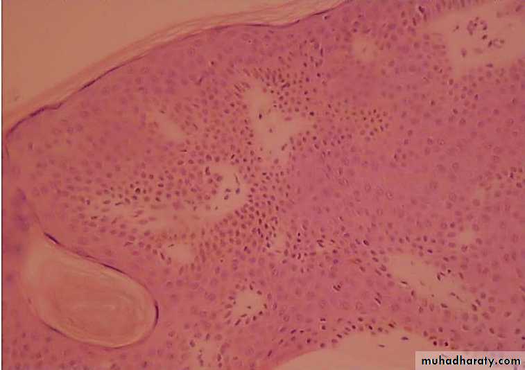 • Melanoacanthoma: shows dendritic melanocytes packed with melanin which is absent in keratinocytes.