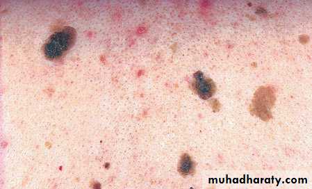 • Sun exposure (Although SKs are common in areas covered by clothing) higher prevalence of SKs within sun-­exposed areas such as the head and neck in contrast to non-sun ­exposed areas in the same subjects.