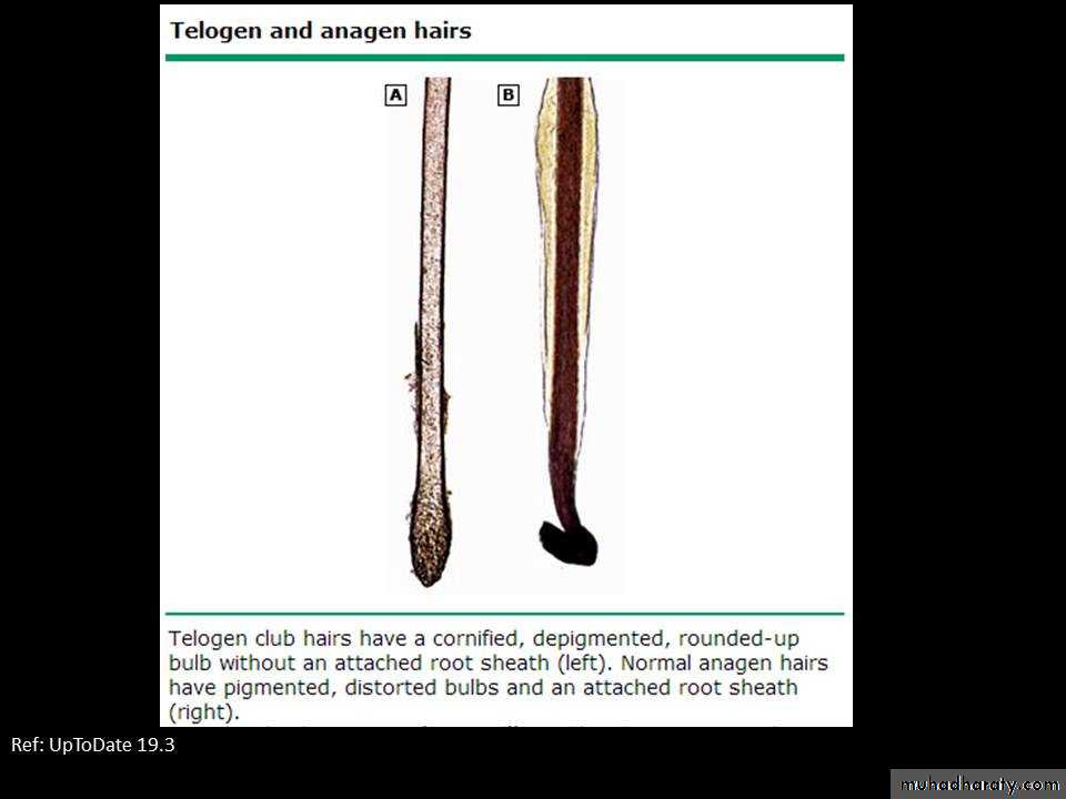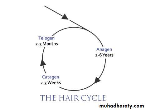 Up to 100 telogen hairs are lost each day from the head, and about the same number of follicles enter anagen.