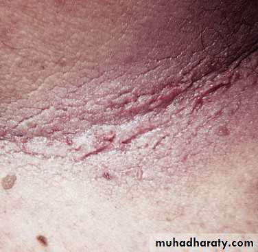 Rx: Localized lesions are asymptomatic and are best left untreated. Intralesional triamcinolone acetonide injected only into the elevated border. Also, topical steroids, and imiquimod cream.