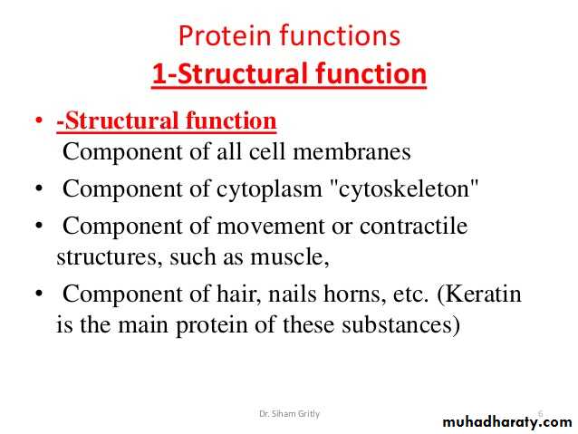 Functions of proteinProvide structural and mechanical support