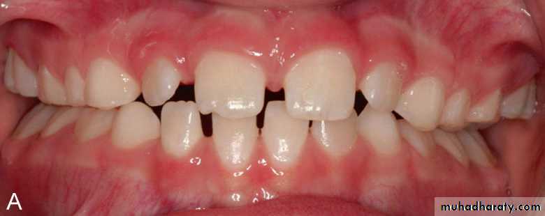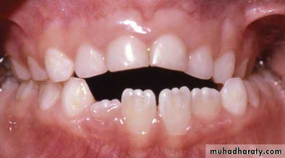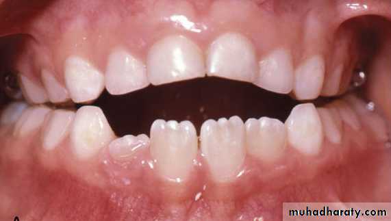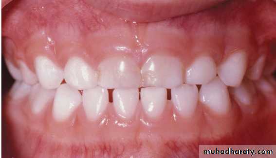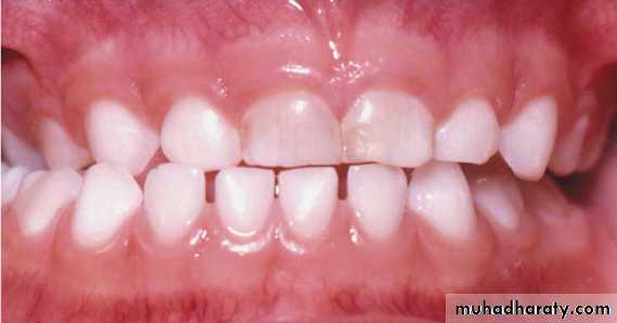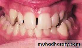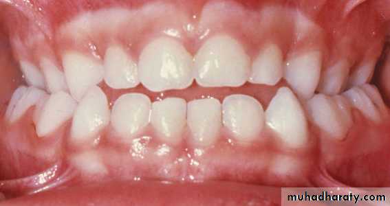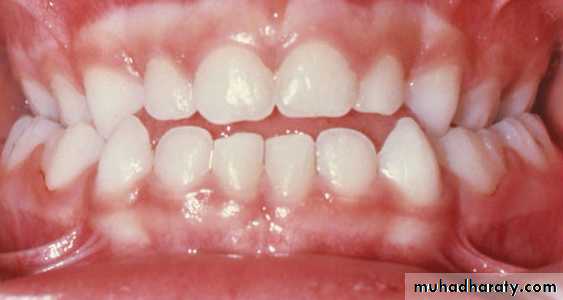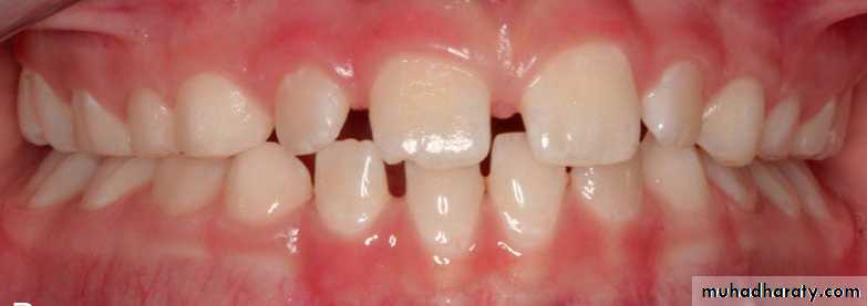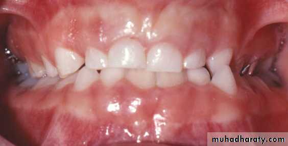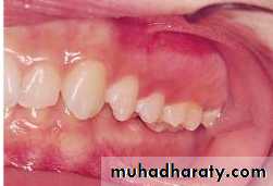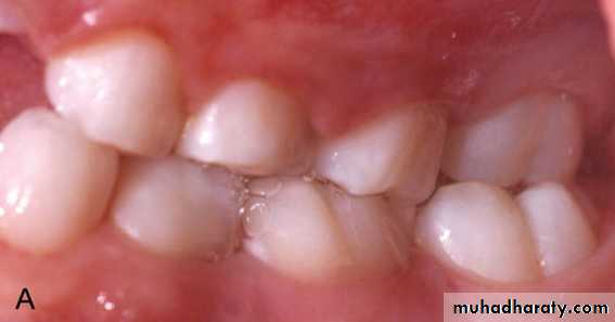 • Occlusal interferences from primary canine: there is normal occlusal relations at initial contact but in centric occlusion there is mandibular shift leading to unilateral crossbite.