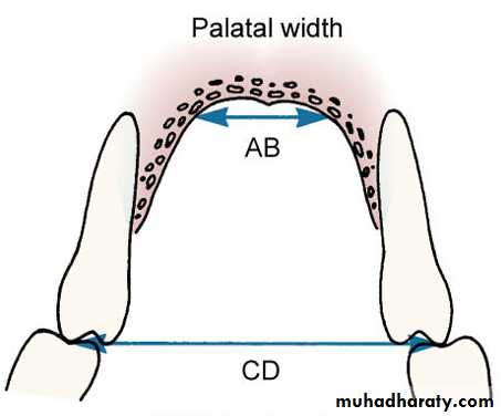 Normal width of palatal vaultIntermolar width is approximately equal to palatal width