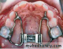 • Cross-elastics from upper molars to lower teeth that are stabilized with mandibular lingual arch.This produce more unilateral effect but should be used for short duration to prevent excessive extrusion of posterior teeth.