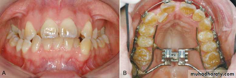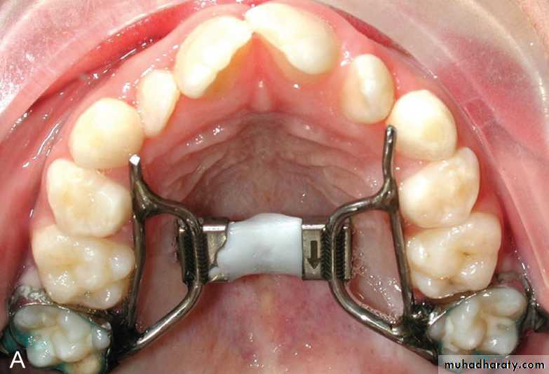 • Expansion of a narrow upper archDifferent types of appliances can be used for primary or mixed dentition child and all will produce some opening of the midpalatal suture in addition to dental expansion: