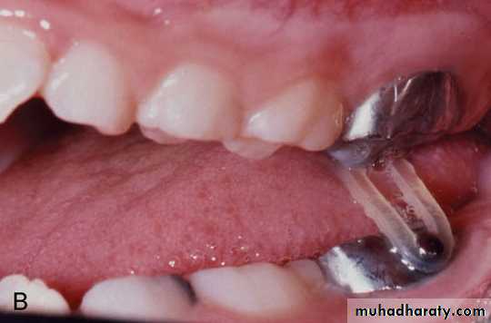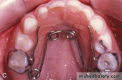 The preferred appliance is adjustable lingual arch that is banded to molars and requires little patient cooperation.