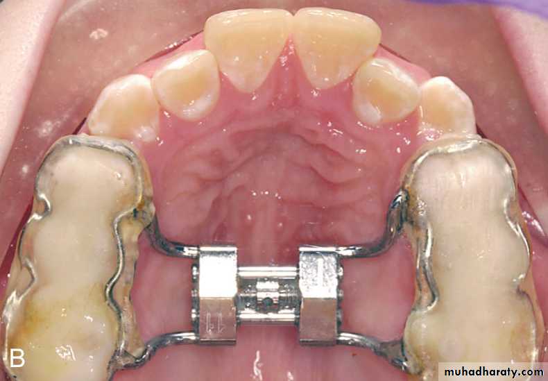 In this age slow and rapid expansion can be used. However, as the patient matures heavy forces and more rapid activation is required to open the suture.• Bonded or banded expander. (can produce both rapid and slow expansion)