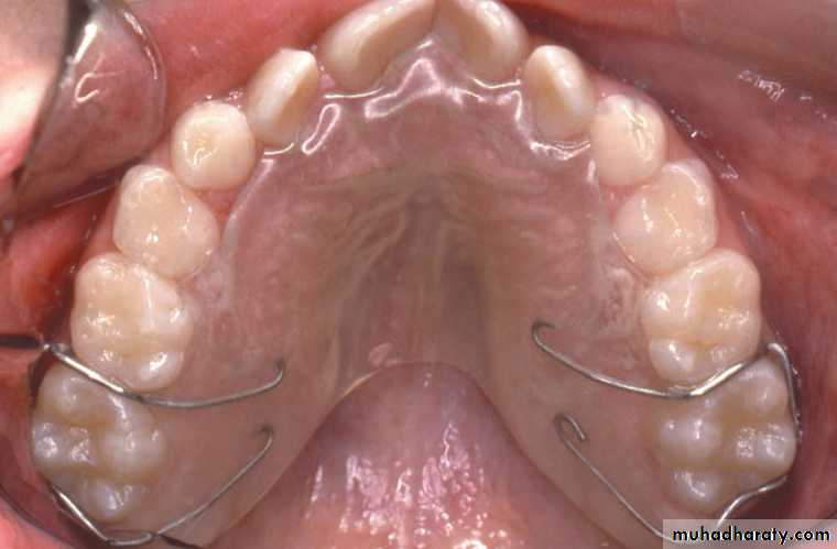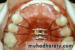 • Heavy labial expansion arch: made from 0.9 mm wire and adjusted so that its slightly wider than headgear tubes and must be compressed by patient on insertion.