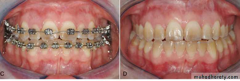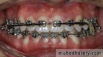 • Cross-elastics: from the lingual of upper molars to the buccal of lower molars that are stabilized with mandibular lingual arch. This method is also useful when there is true unilateral crossbite.After correction of crossbite retention is achived using heavy rectangular archwire