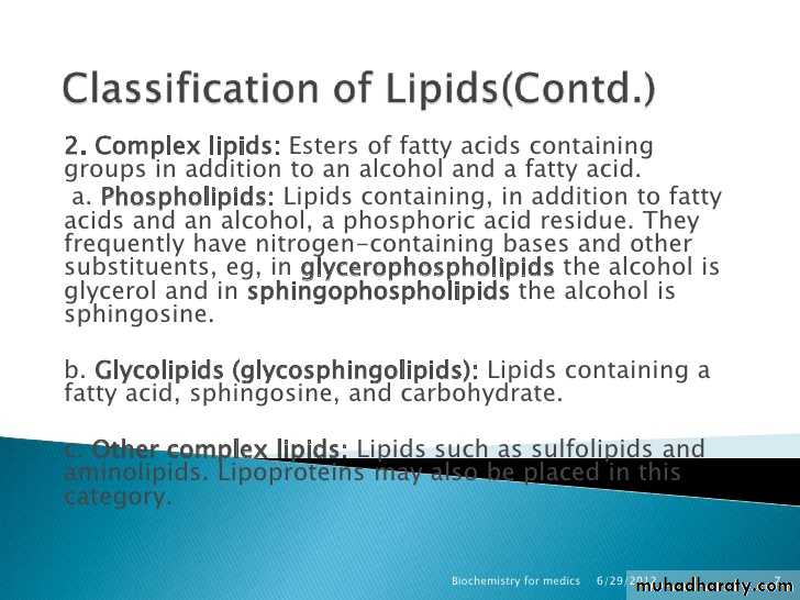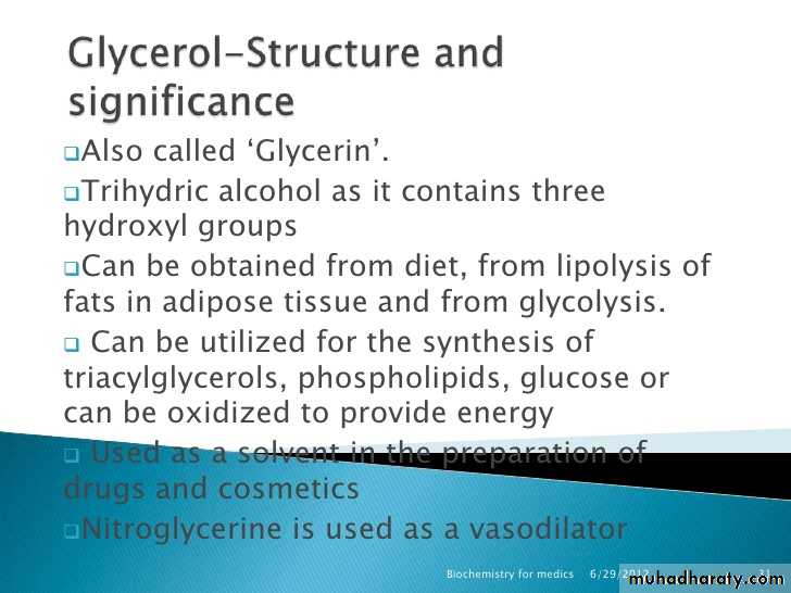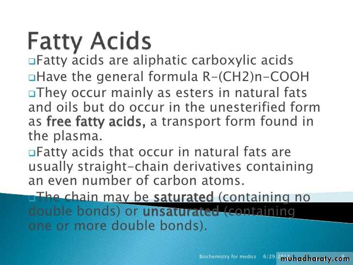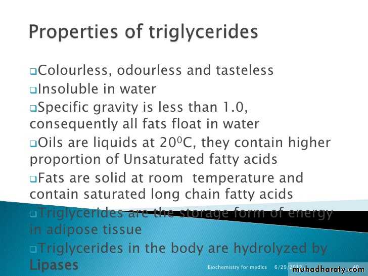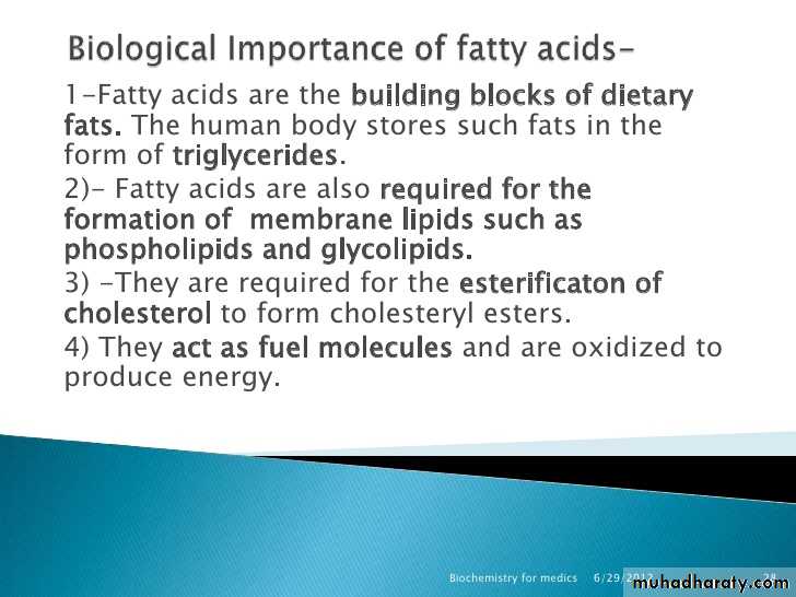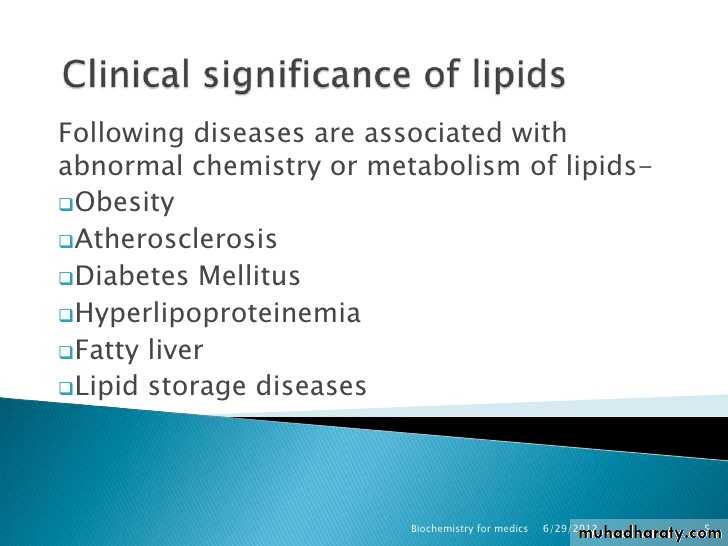 1- Lipid supply energy (source of higher energy).Oxidation of 1 gm of fat release 9 k-cal.