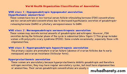 A clinical assessment of ovulation can be made from the menstrual history:Amenorrhea signifies the absence of ovulation and certainly represents a cause of infertility.