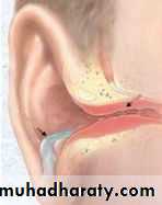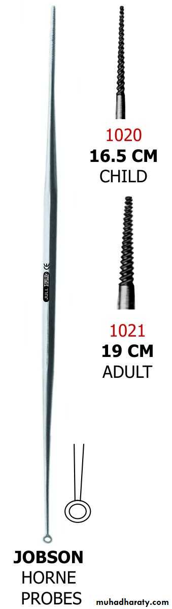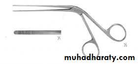the joint is proximal. It is used for insertion of wick inside the ear ( ear dressing ) in cases of otitis externa and during ear surgery.Crocodile ear forceps : note that the joint is distal. It can be introduced through the aural speculum and used for removal of certain types of foreign bodies and biopsy.