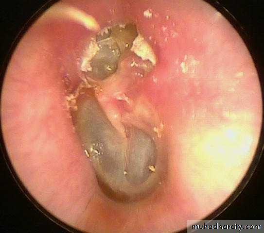 Slide 6Twenty years old male patient with recurrent ear discharge for 5 years.1- what is the diagnosis?2- what is the surgical treatment?