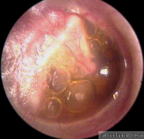 Slide 6Five years old boy with nasal block, snoring and hearing loss for one month duration. Otoscopic examination shows this picture in the right ear.Q1- what is the most likely diagnosis?Q2- what is the surgical treatment of this ear problem?