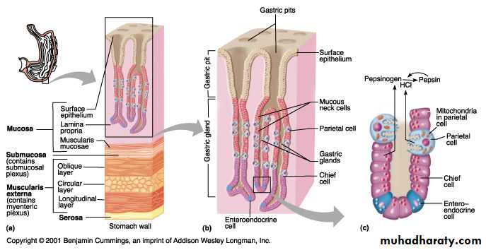 The structure and cell types of gastric mucous: