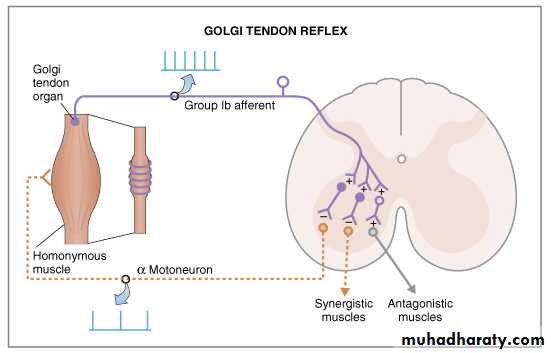 3. As the homonymous muscle relaxes, the reflex also causes synergistic muscles to relax and antagonistic muscles to contract.