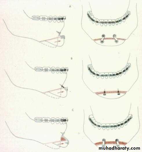 Is an osteotomy to free a wedge-shaped portion of the symphysis and inferior border that remains pedicled on the genioglossus and geniohyoid muscles.GENIOPLASTY