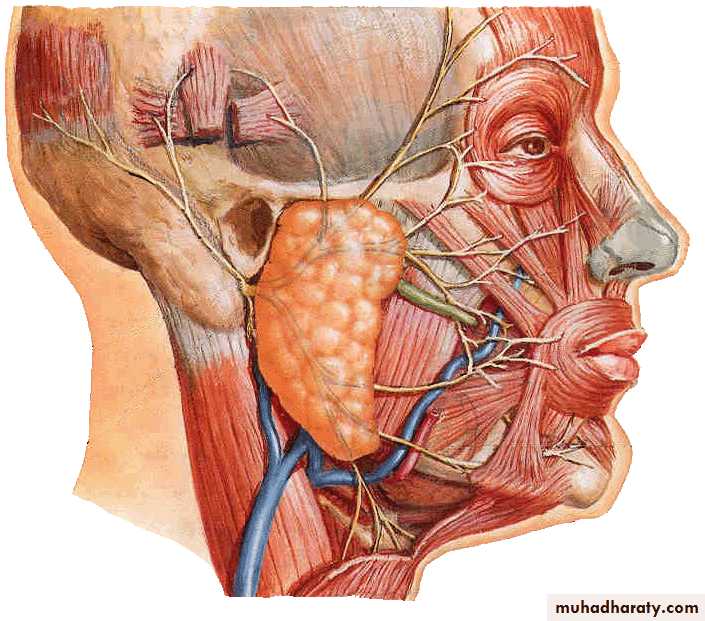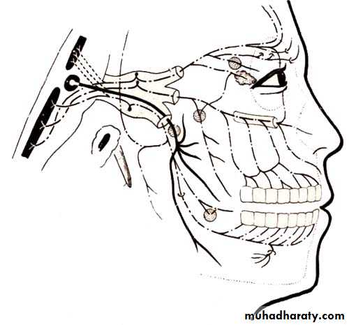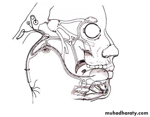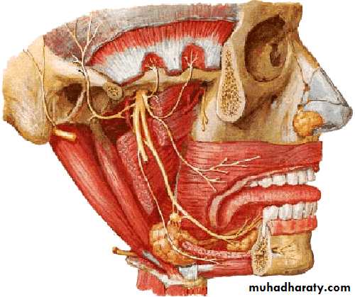 Submandibular ganglion : lies between lingual nerve and submandibular glandInjury to the facial nerve