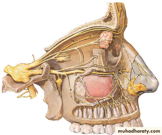 Pterygopalatine ganglion: lies in pterygopalatine fossa under maxillary nerve