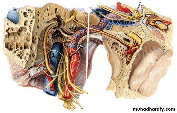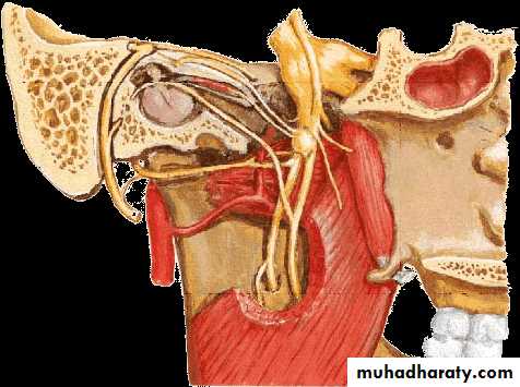 GVE fibers: arise from inferior salivatory nucleus and ralyed in otic ganglion, the postganglionic fibers supply parotid gland