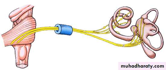 Vestibular ganglion(SSA) ↘ ↗ Vestibular nucleiInternal acoustic meatus