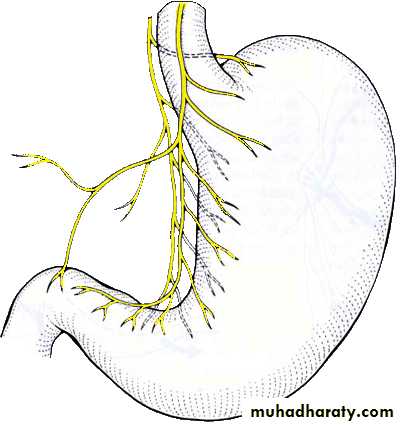 Anterior and posterior gastric branchesRun close to lesser curvature and innervate anterior and posterior surfaces of stomach