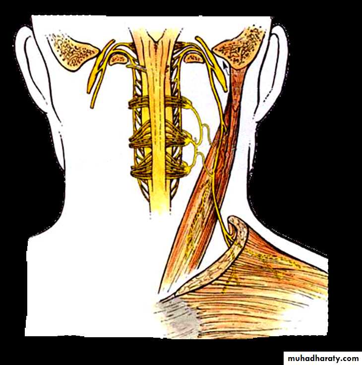 Spinal root Anterior horn cells of upper 5-6 cervical spinal segmentsFibres in the spinal root supply sternocleidomastoid and trapezius muscles