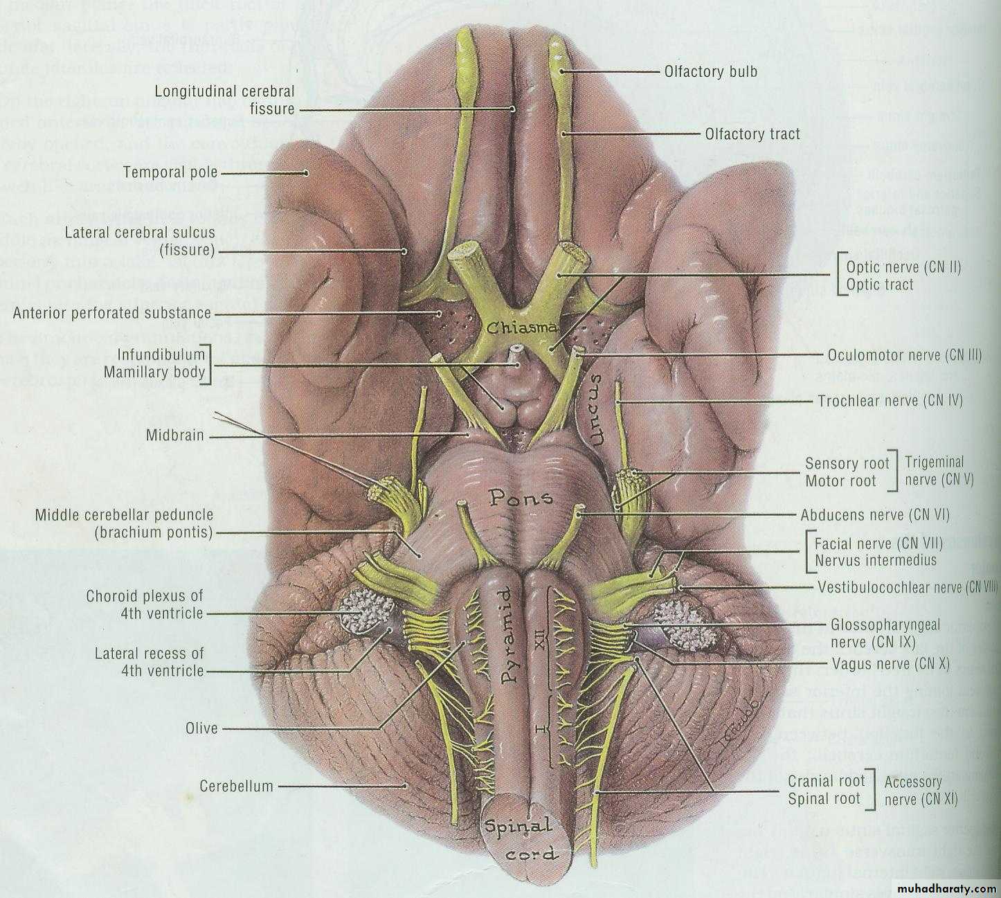12 pairs of cranial nervesIII to XII attached to brain stem