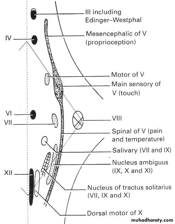 Dorsal motor nucleus of vagus(for cardiac muscles, smooth muscles of alimentary tract)