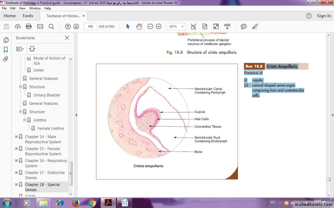 Semicircular ducts are three in number, small in size and found within the semicircular canals.These ducts have the same confi guration as the semicircular canals. Sensory receptors are found in the ampullae of semicircular ducts as transverse thickening called crista ampullaris.