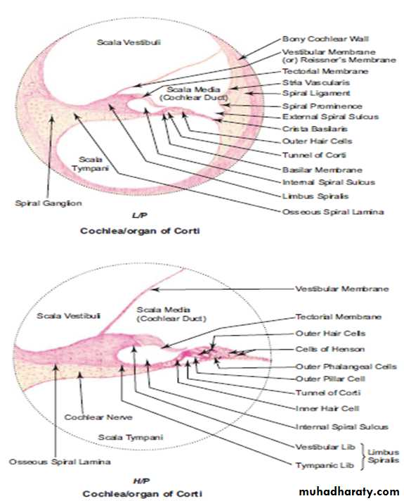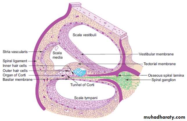 • Organ of Corti;