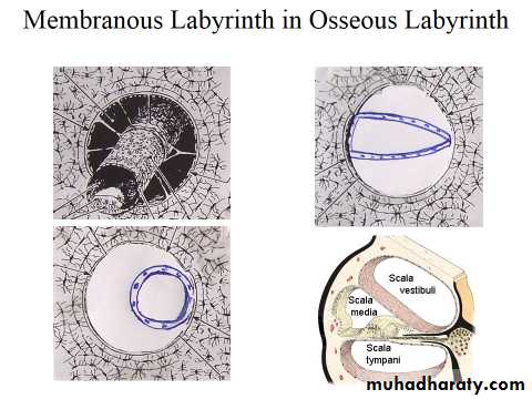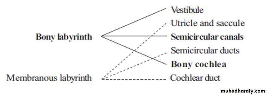 • Membranous labyrinth is lodged within the bony labyrinth.