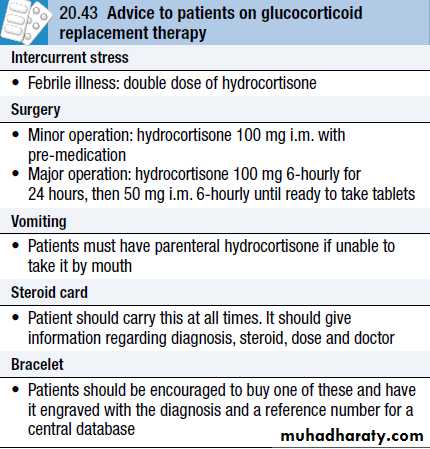 If glucocorticoid therapy has been prolonged, then it may take many months for the HPA axis to recover. All patients must be advised to avoid sudden drug withdrawal. They should be issued with a steroid card and/or wear an engraved bracelet