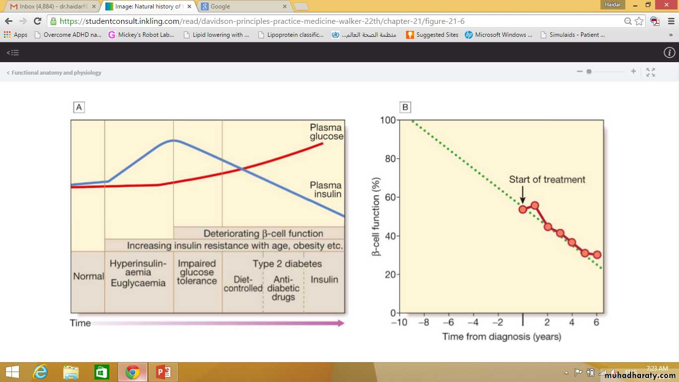 The natural history of typical type 2 diabetes is shown in following figure.