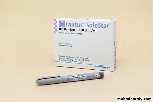 Long-acting(insulin analogues: glargine, detemir)