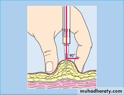In most patients, insulin is injected subcutaneously several times a day into the anterior abdominal wall, upper arms, outer thighs and buttocks
