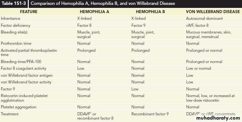 In severe disease, factor 8 deficiency may be profound, and the pt may also have manifestations similar to hemophilia A (hemarthrosis). Findings in classic VWD differ from findings in hemophilia A and B.