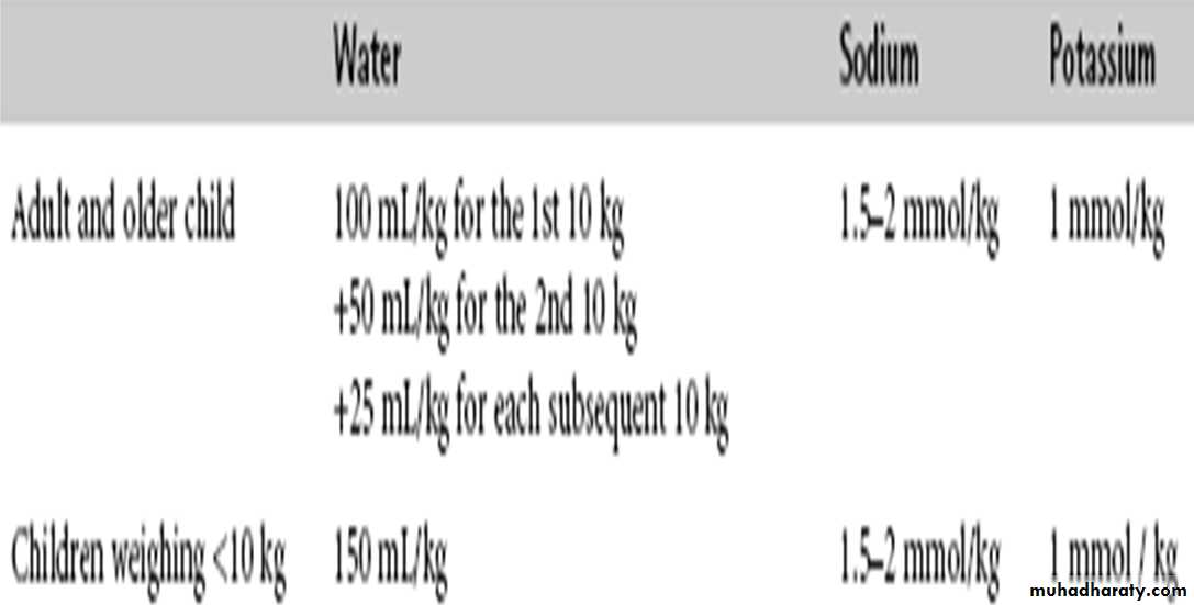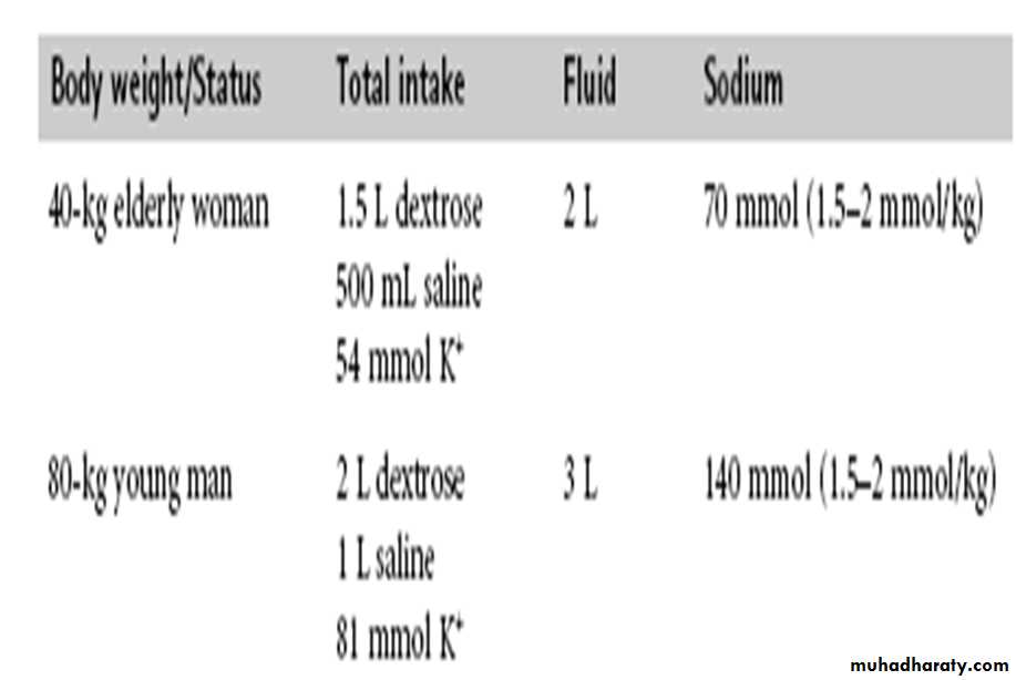 Many postoperative patients, especially those who have had intra-abdominal surgery, will be unable to take oral fluids for several days. Maintenance fluid and electrolytes are given intravenously
